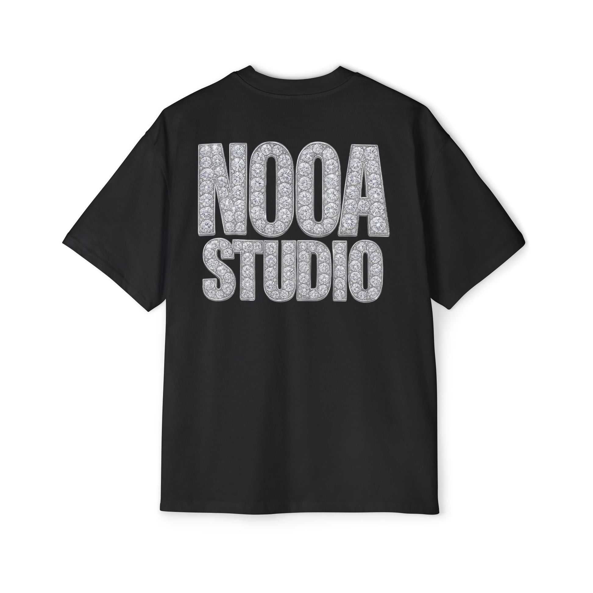 This oversized tee brings relaxed streetwear energy with artful, collage-style graphics and bold back lettering. The front print layers a vintage portrait-like image with sporty motifs and textured patterns for a look that feels curated and lived-in. On the back, chunky, embossed-style studio lettering gives the shirt a strong identity without shouting. The midweight carded cotton drapes with substance and holds its shape; dropped shoulders and an oversized cut create an easy, go-anywhere silhouette. Wear it with wide-leg jeans, layered under an open shirt, or alone when you want an effortless statement that reads like a favorite mixtape sleeve.