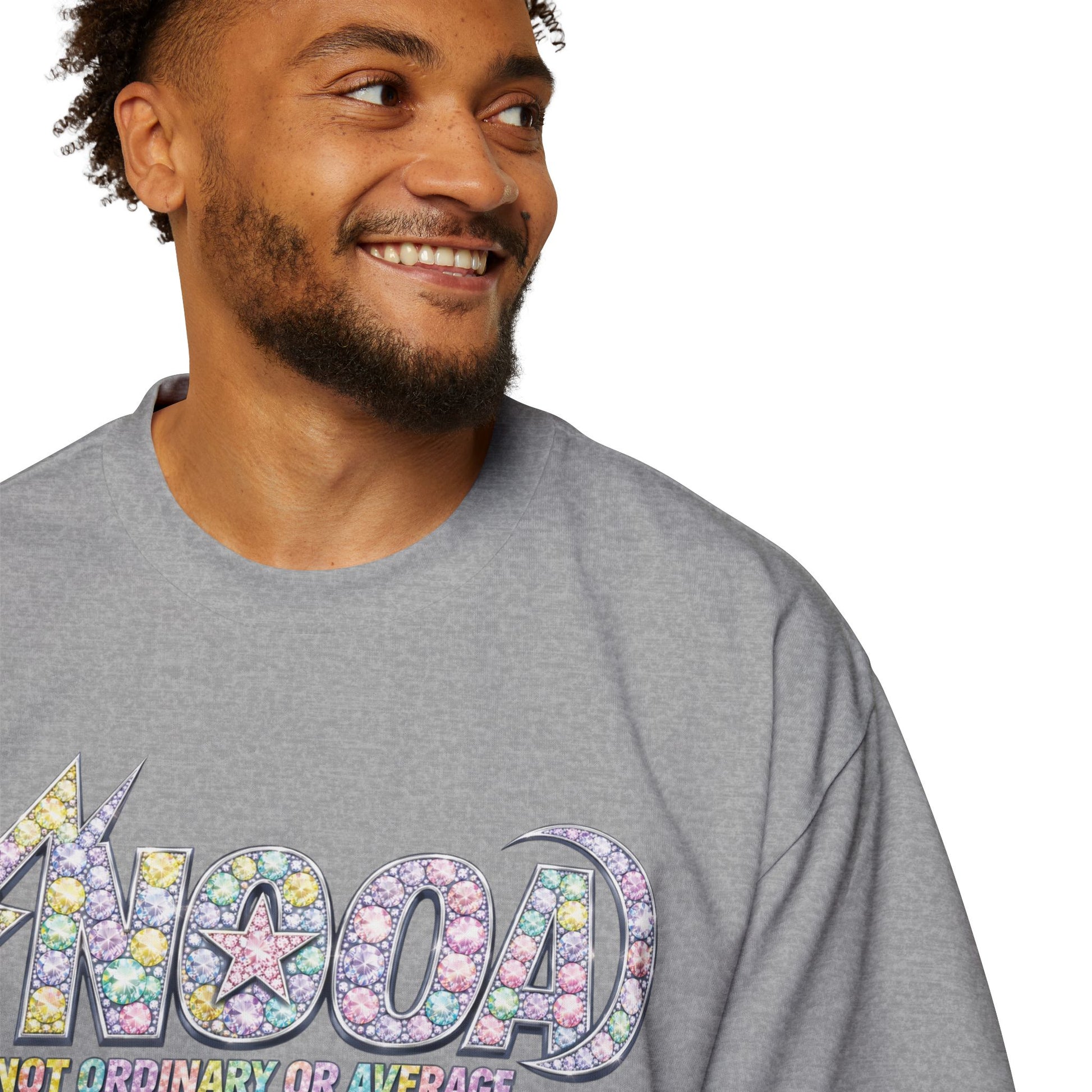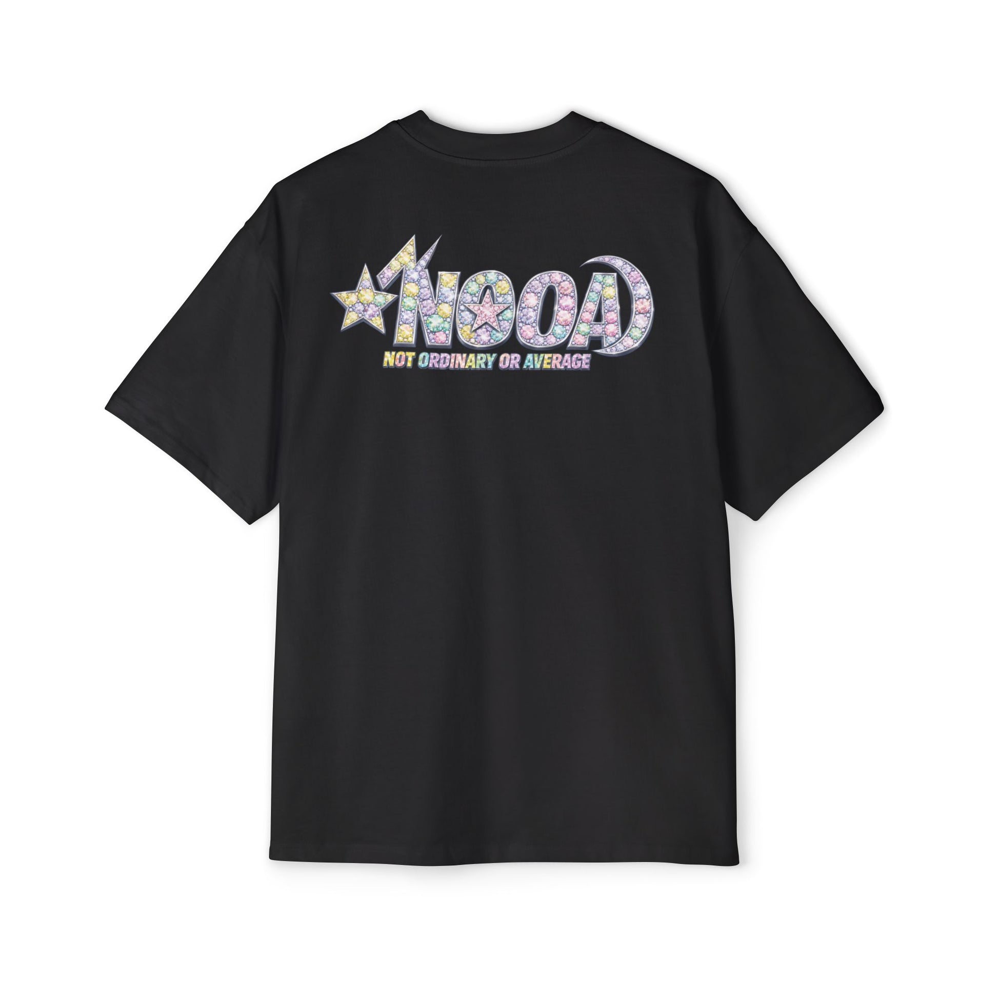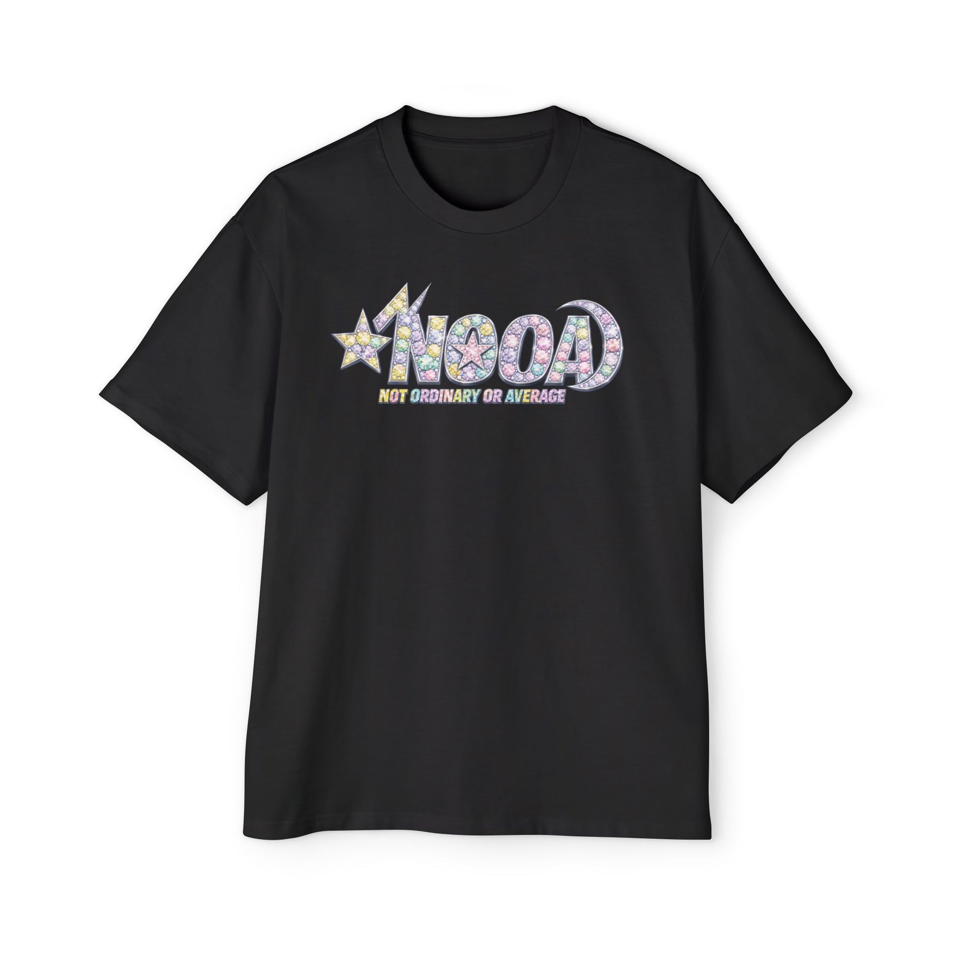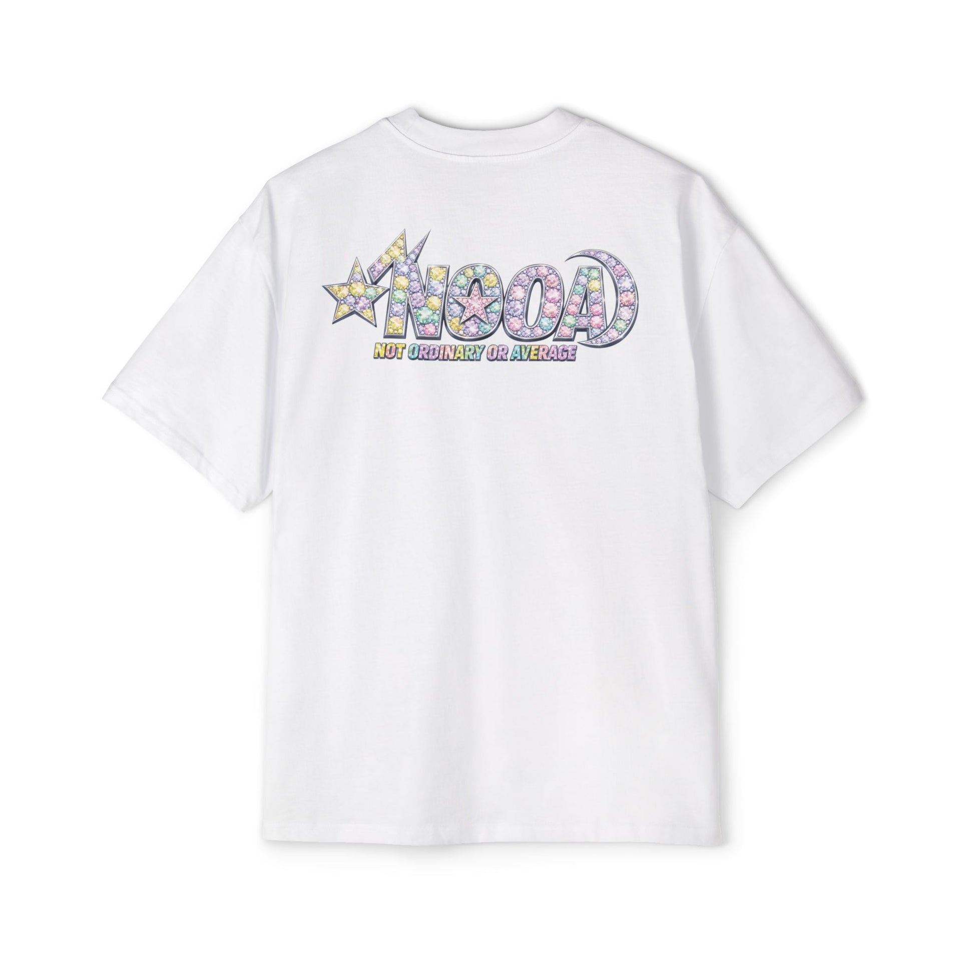 This oversized tee brings a retro, playful vibe to everyday wear. Soft yet sturdy carded cotton and medium-heavy weight give it a lived-in, durable feel that shapes to your routine. The front-and-back graphic — bubbly letters and a star motif in pastel mosaic hues — reads like nostalgia turned into street-ready art. Wear it for long days when comfort matters and style still speaks: loose sleeves for layering, reinforced shoulders that hold their shape, and double-stitched hems built to last. It settles into your wardrobe the way an old favorite does, adding a lighthearted pop to neighborhood walks, coffee runs, or laid-back meetups.