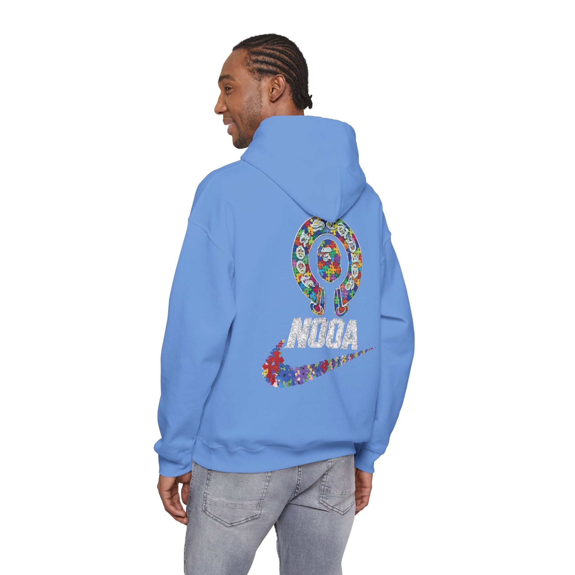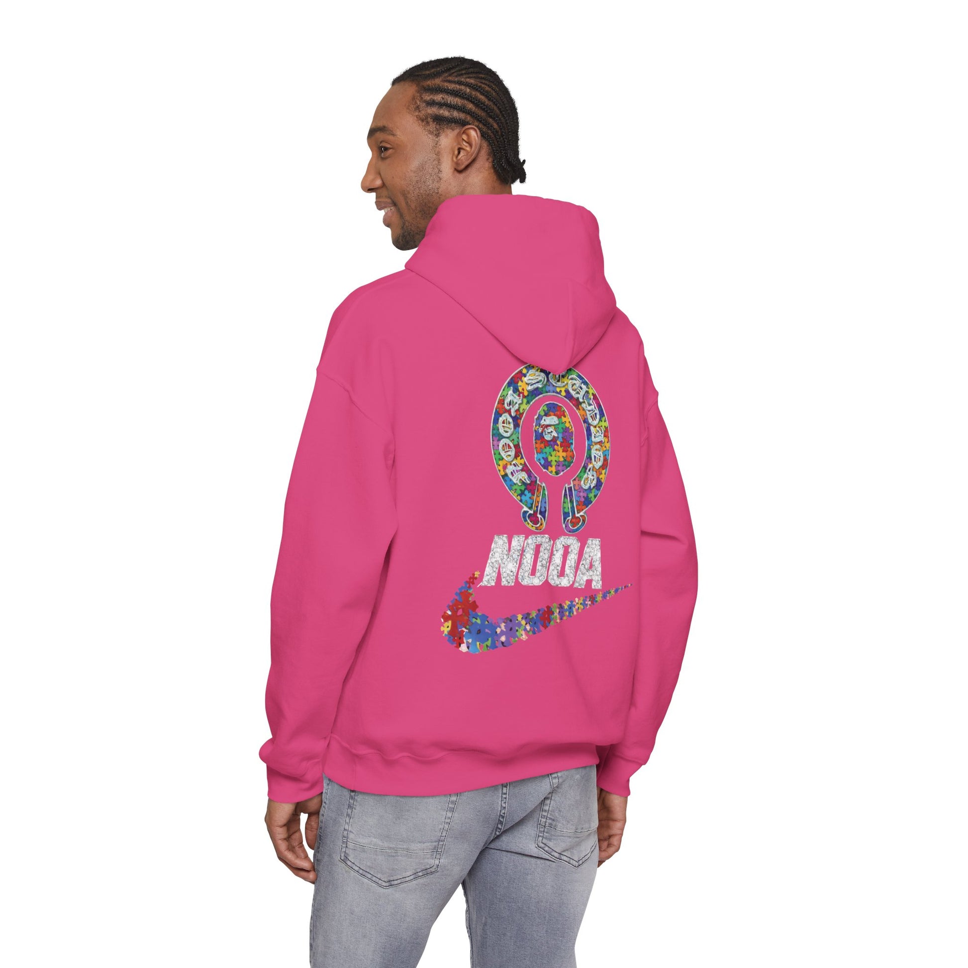 This cozy hoodie blends street-ready comfort with bold, playful graphics. The soft, medium-heavy 50/50 cotton-poly fabric holds shape and color while the double-lined hood and color-matched drawcord add subtle style. Front and back graphics use vibrant DTF/DTG prints to create a layered, sticker-collage effect—small crest and script on the chest and a larger emblem with swoosh across the back. The roomy kangaroo pocket and classic fit make it easy to throw on for chilly mornings, creative runs, or chilled hangouts. It wears like your favorite go-to layer and shows off a quirky, artful vibe without shouting for attention.