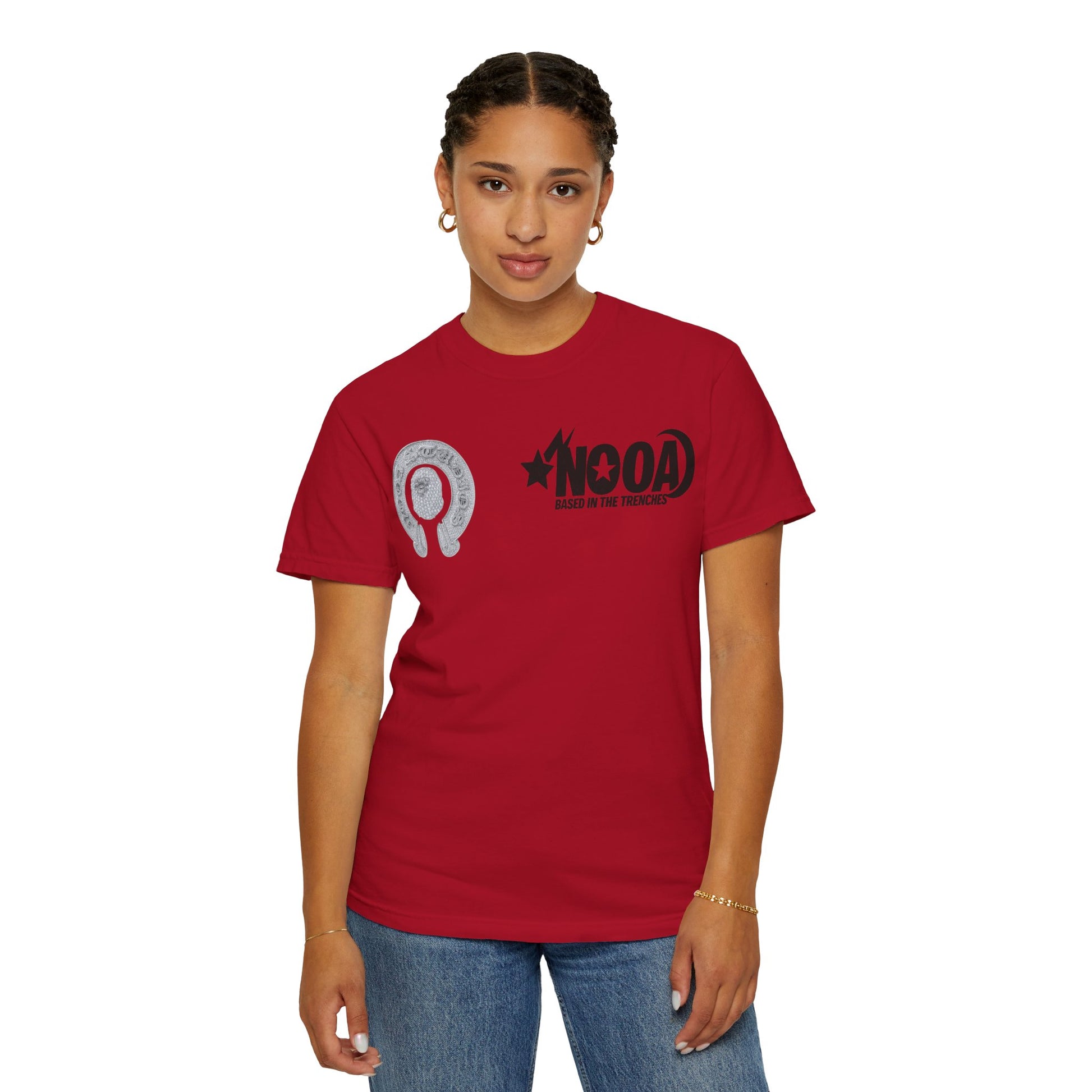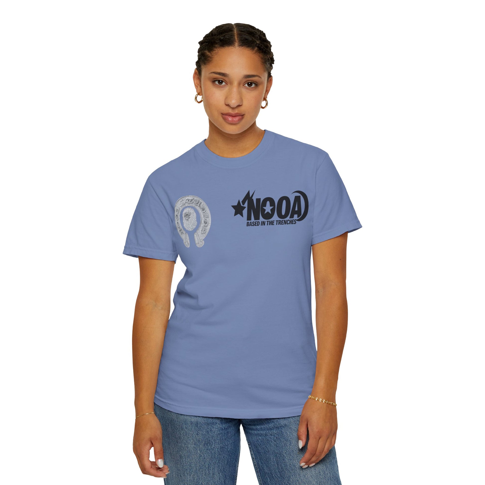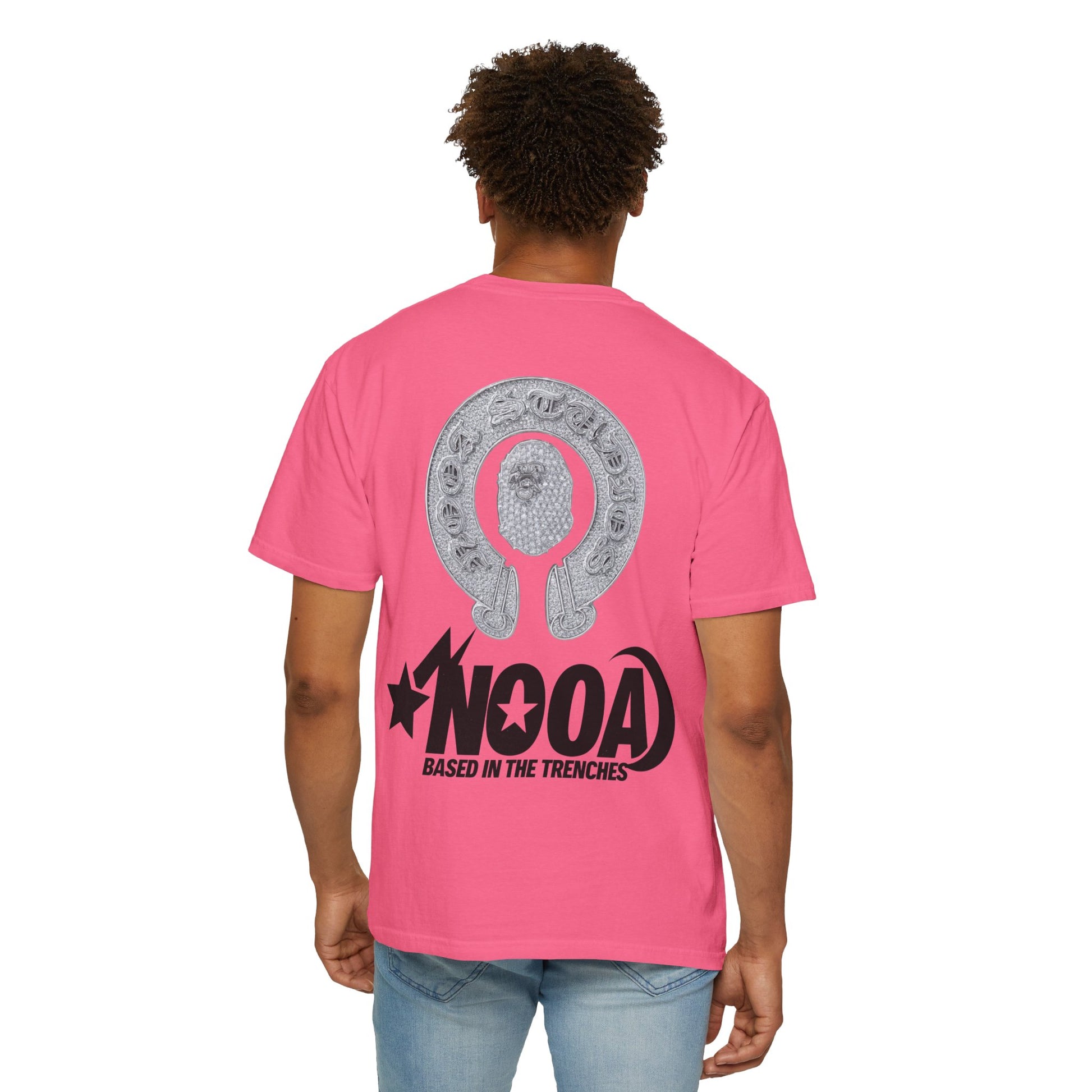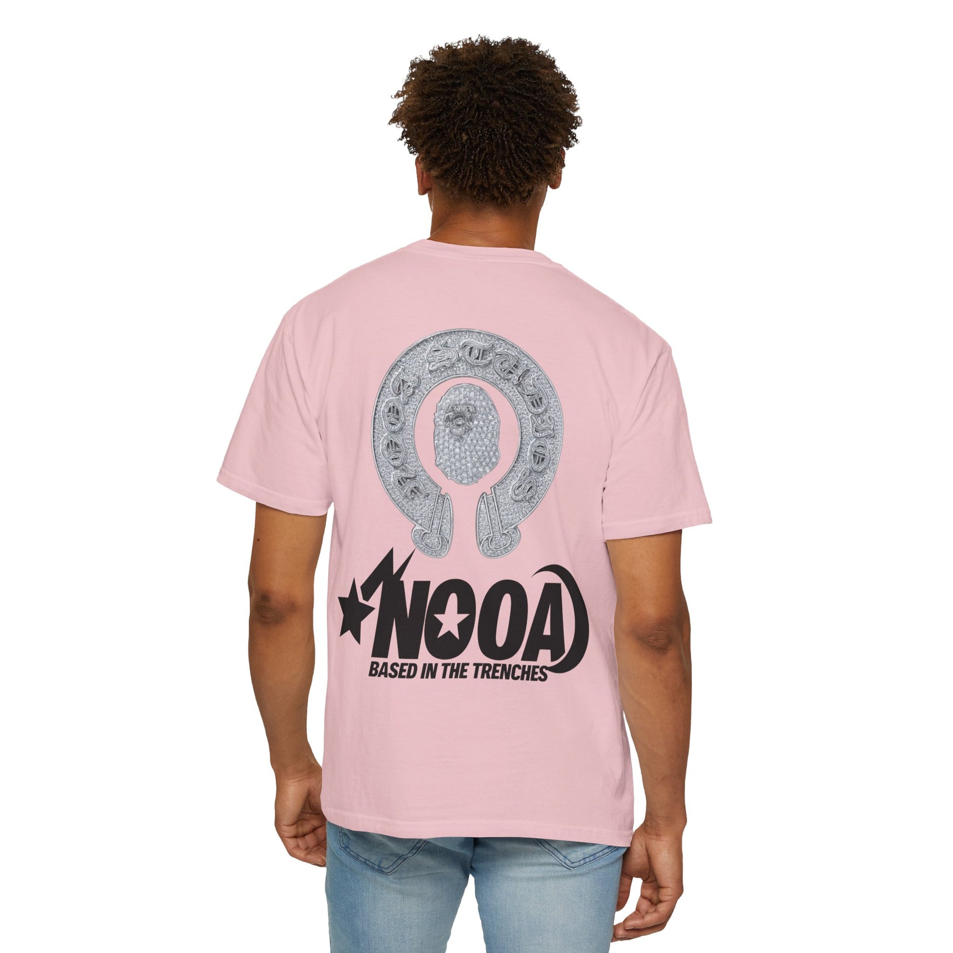 A relaxed, garment-dyed tee that wears in like a favorite — soft, substantial, and quietly bold. The heavyweight 100% ring-spun cotton has a lived-in texture from the post-construction dyeing, giving prints a slightly vintage, broken-in look. Clean front artwork sits on the chest while a larger, gritty emblem and logo rest across the back, lending a streetwise, underground vibe. This shirt slips easily into everyday rotation: layered under a jacket, thrown on for late-night gigs, or worn while working on rusted projects and creative experiments. It feels reliable on long days and looks like it belongs to a person who values authenticity and grit.