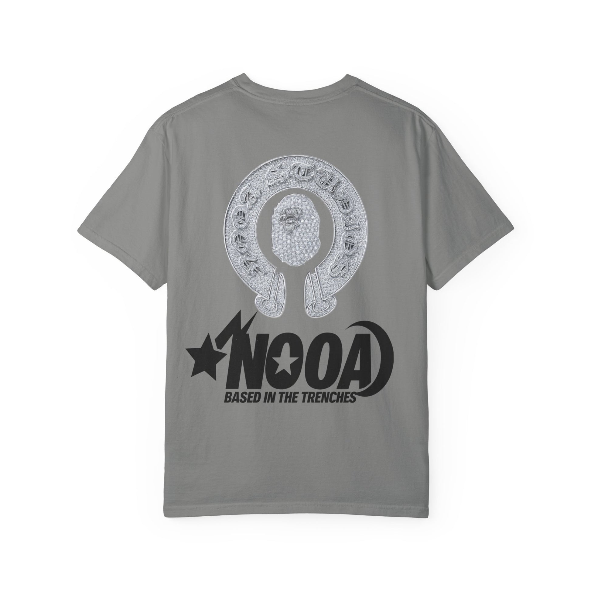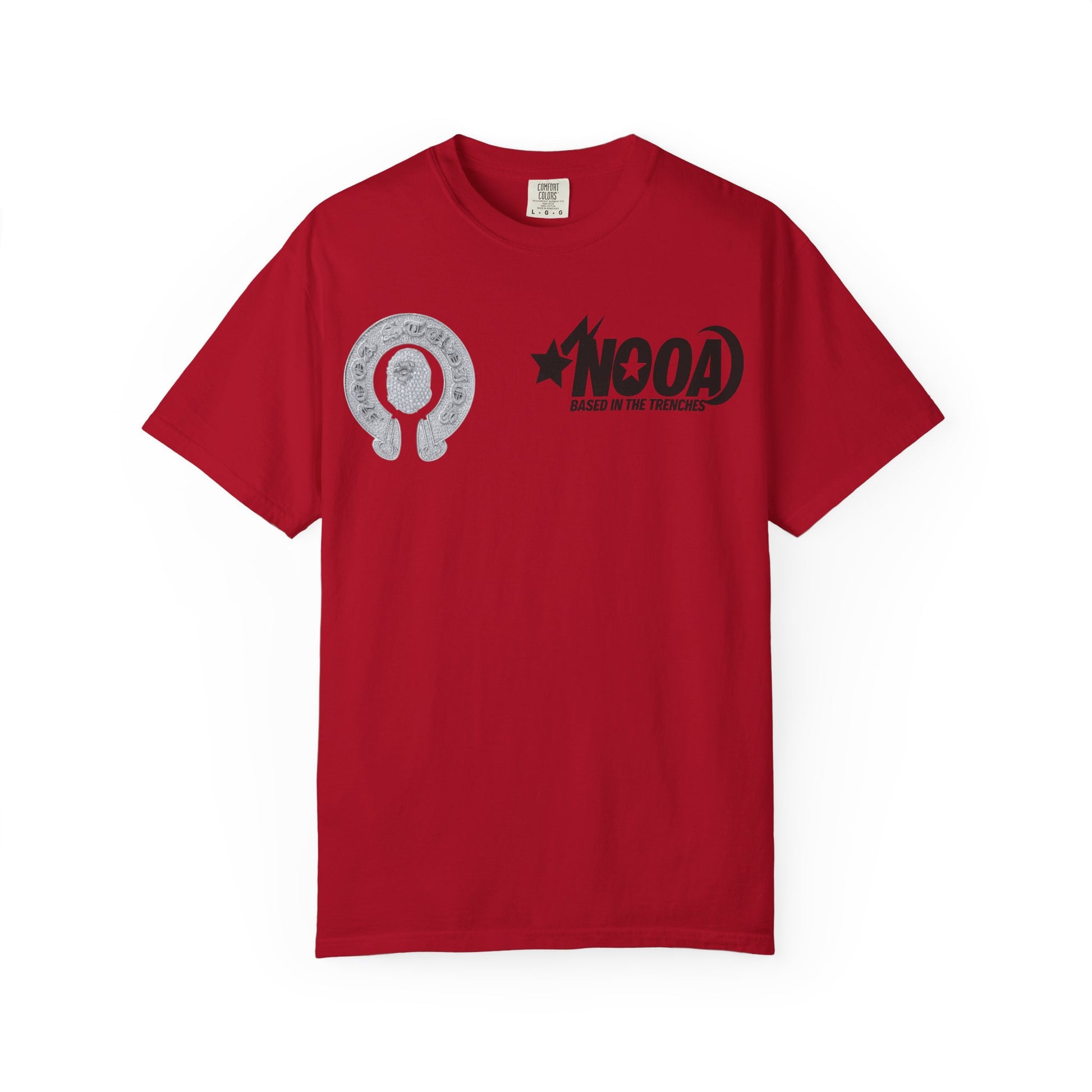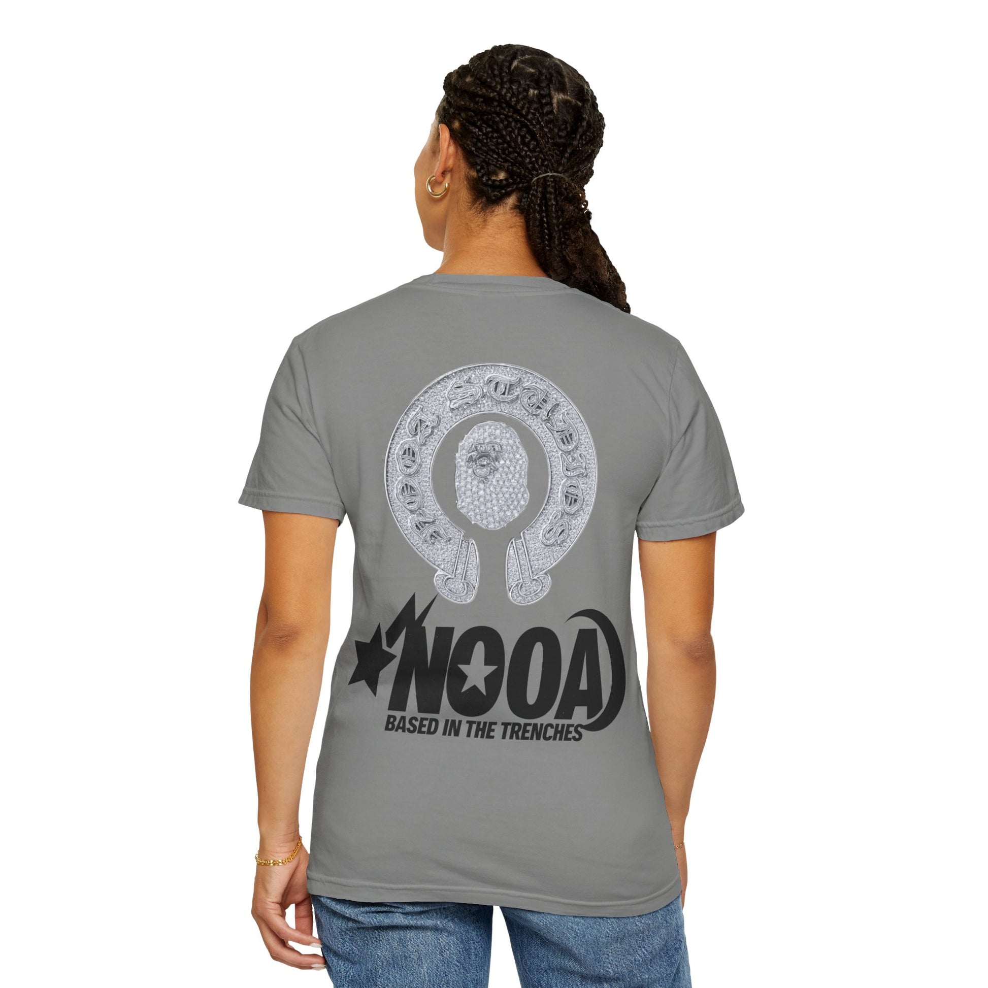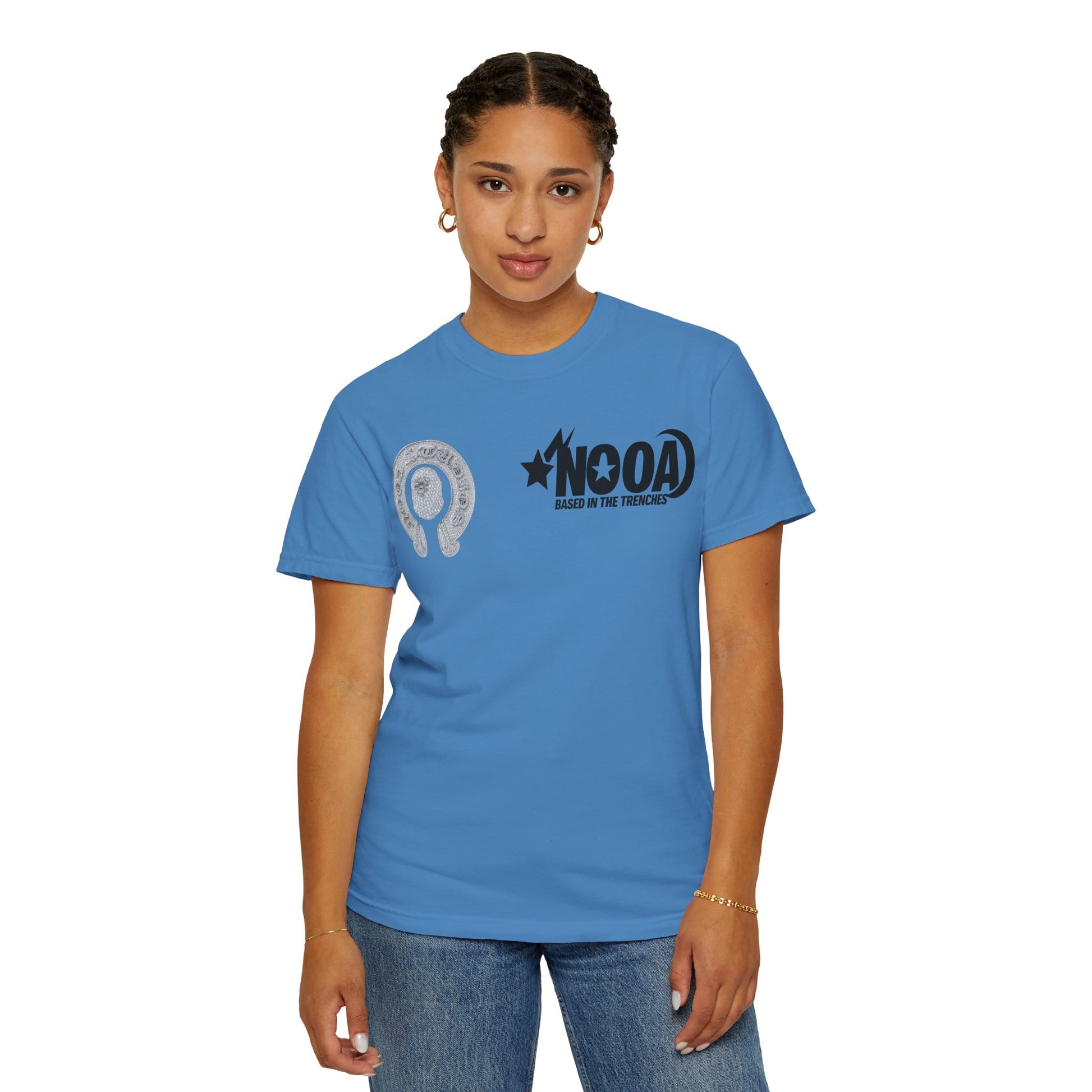 A relaxed, garment-dyed tee that wears in like a favorite — soft, substantial, and quietly bold. The heavyweight 100% ring-spun cotton has a lived-in texture from the post-construction dyeing, giving prints a slightly vintage, broken-in look. Clean front artwork sits on the chest while a larger, gritty emblem and logo rest across the back, lending a streetwise, underground vibe. This shirt slips easily into everyday rotation: layered under a jacket, thrown on for late-night gigs, or worn while working on rusted projects and creative experiments. It feels reliable on long days and looks like it belongs to a person who values authenticity and grit.
