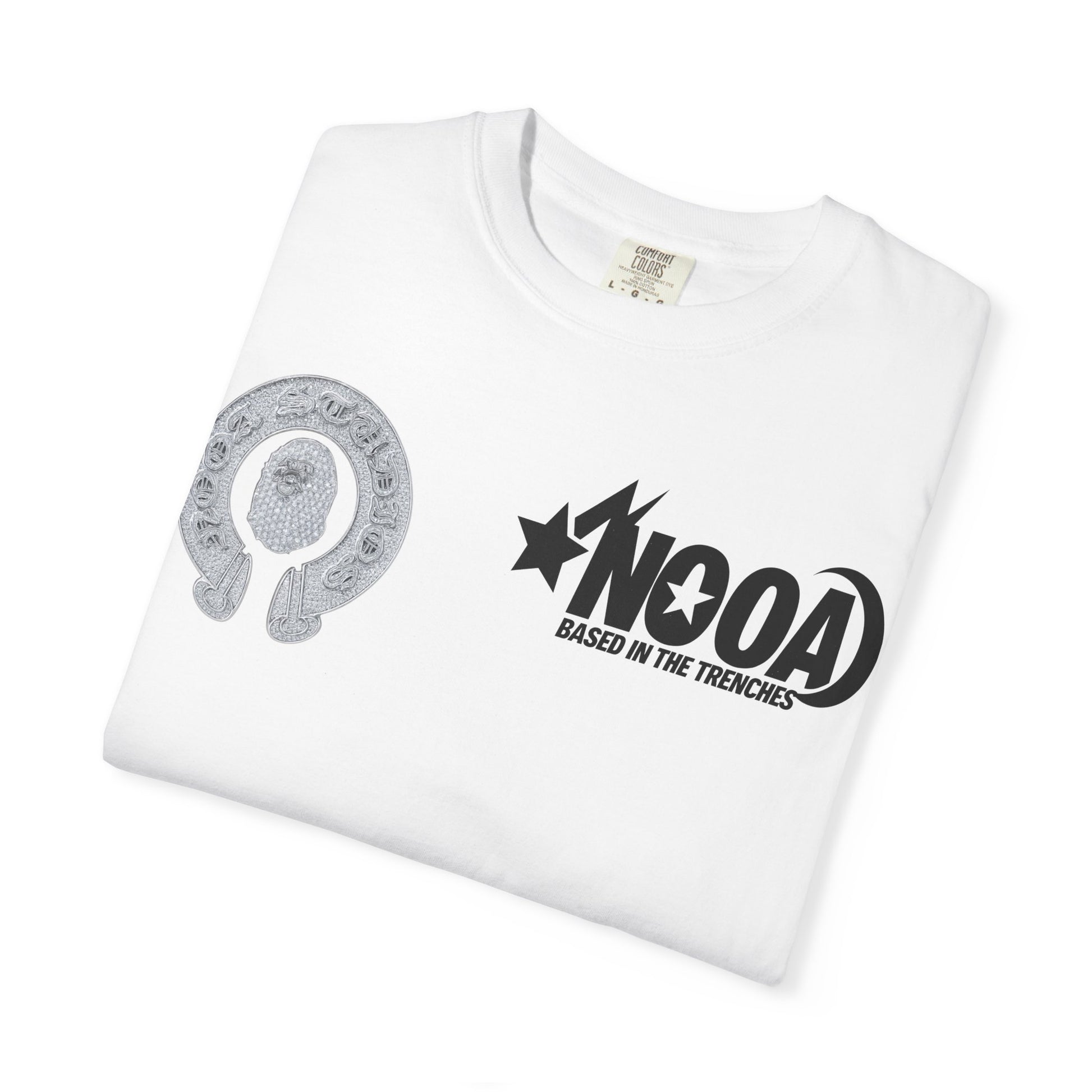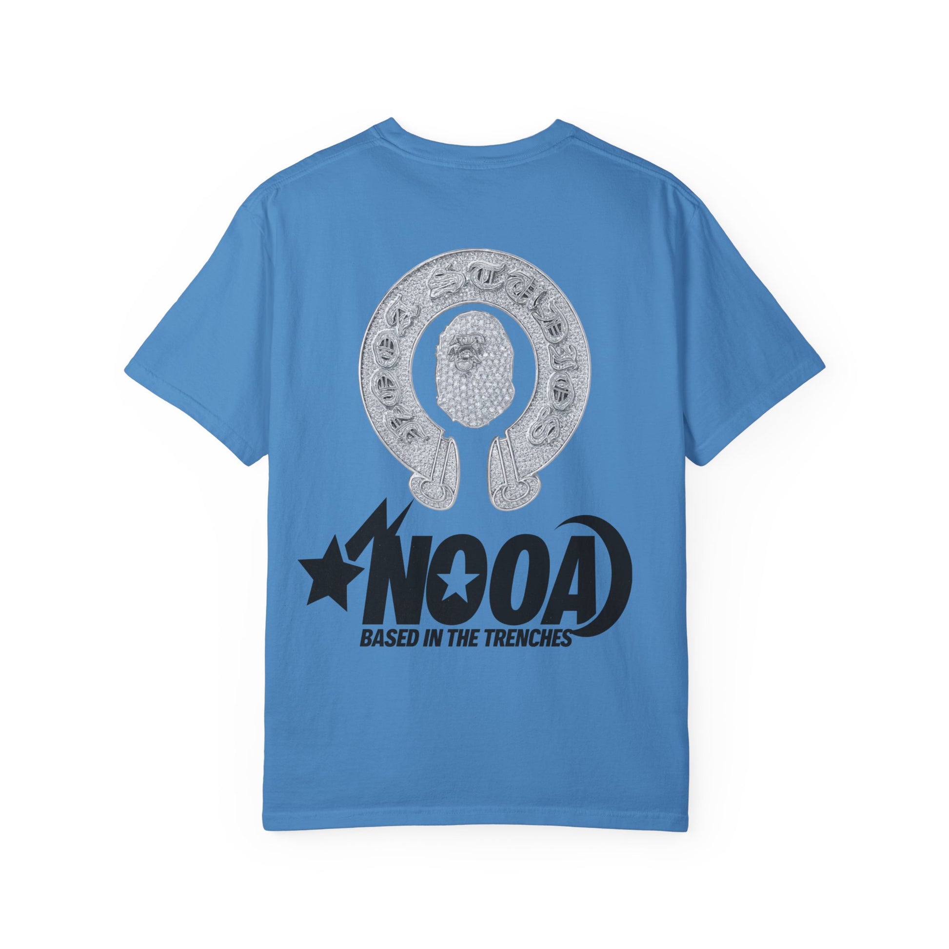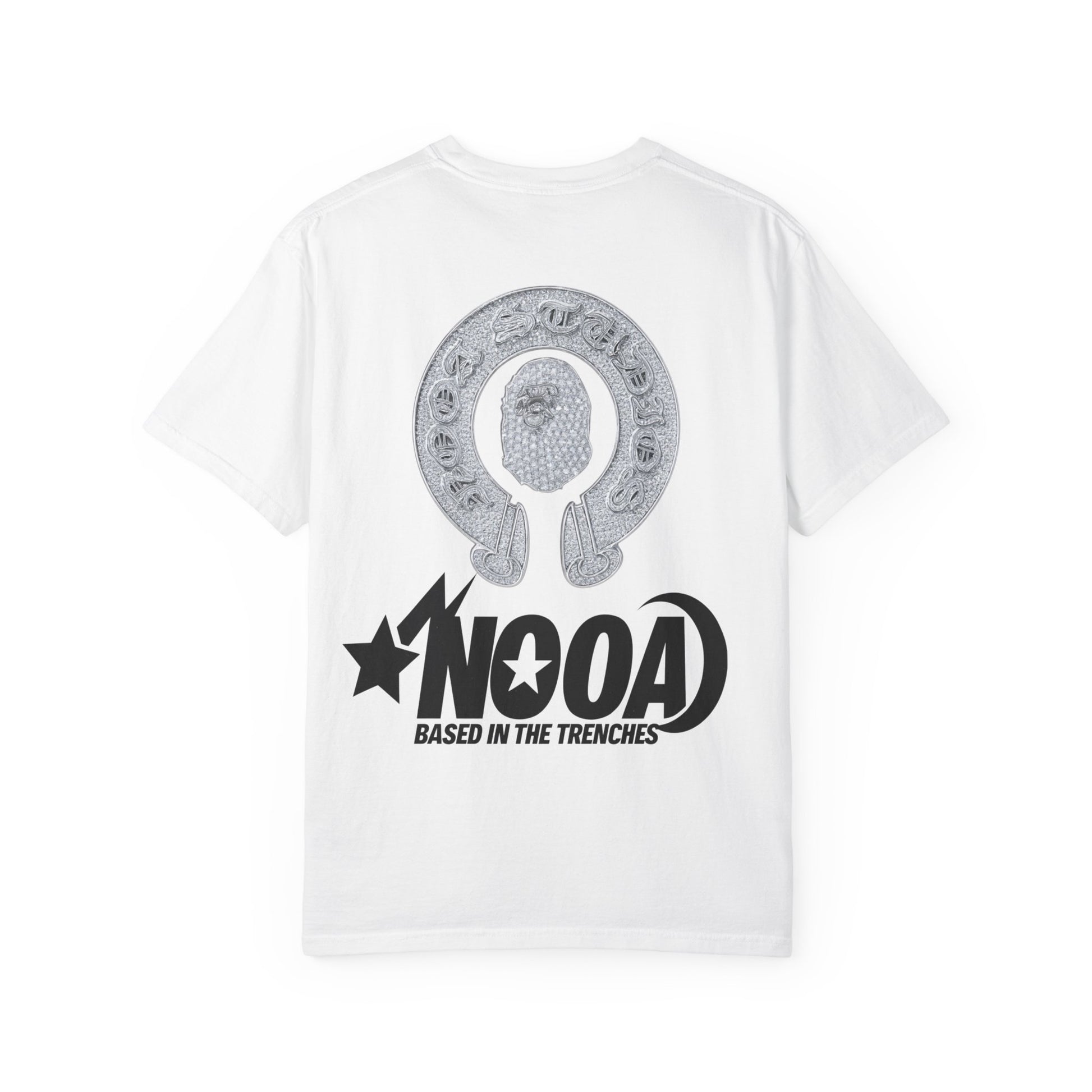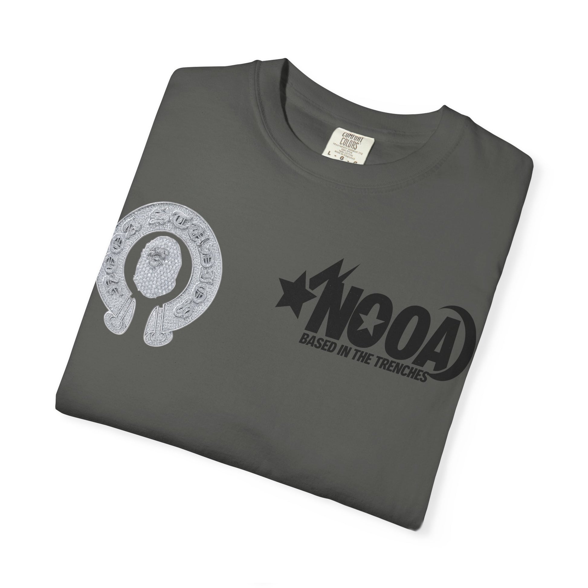 A relaxed, garment-dyed tee that wears in like a favorite — soft, substantial, and quietly bold. The heavyweight 100% ring-spun cotton has a lived-in texture from the post-construction dyeing, giving prints a slightly vintage, broken-in look. Clean front artwork sits on the chest while a larger, gritty emblem and logo rest across the back, lending a streetwise, underground vibe. This shirt slips easily into everyday rotation: layered under a jacket, thrown on for late-night gigs, or worn while working on rusted projects and creative experiments. It feels reliable on long days and looks like it belongs to a person who values authenticity and grit.