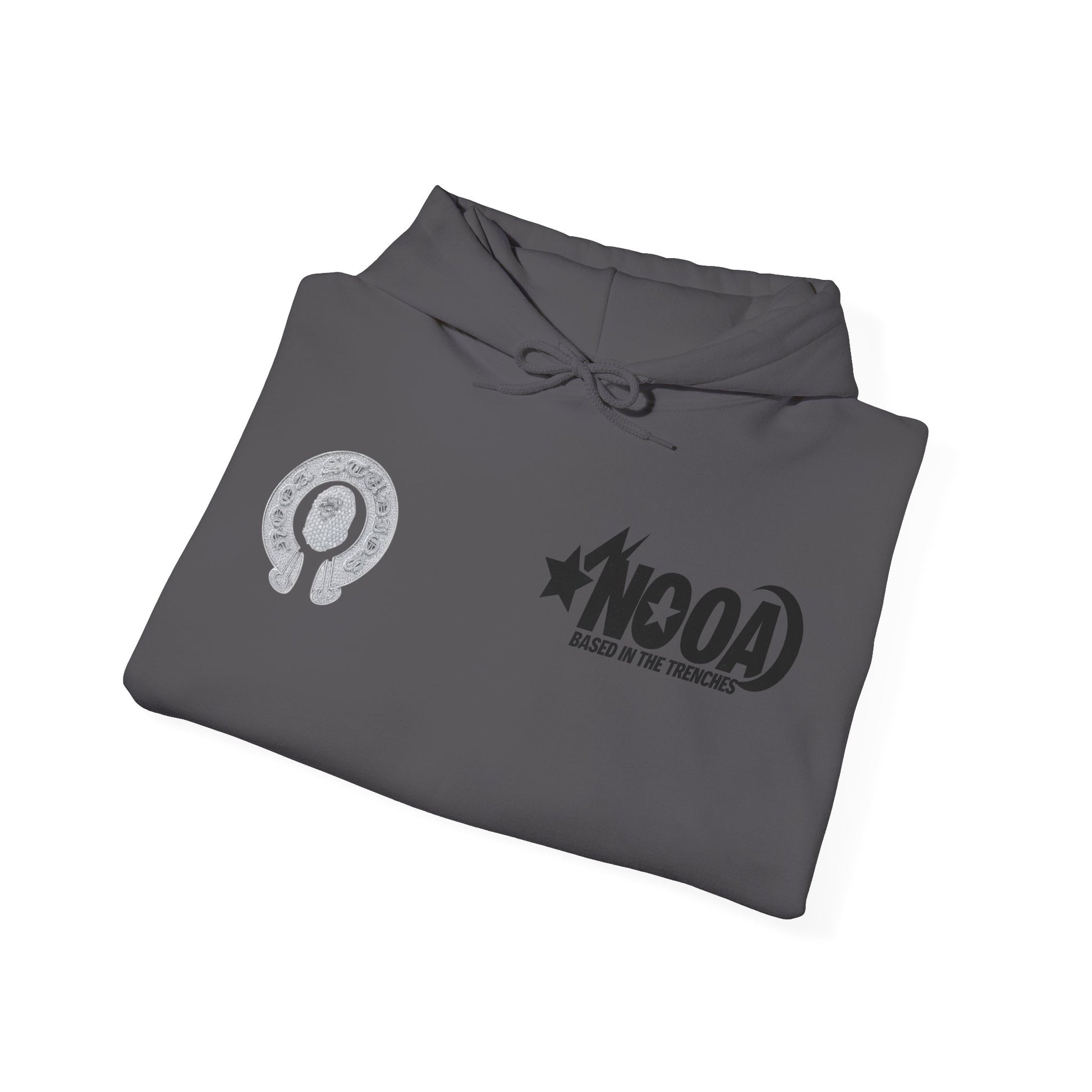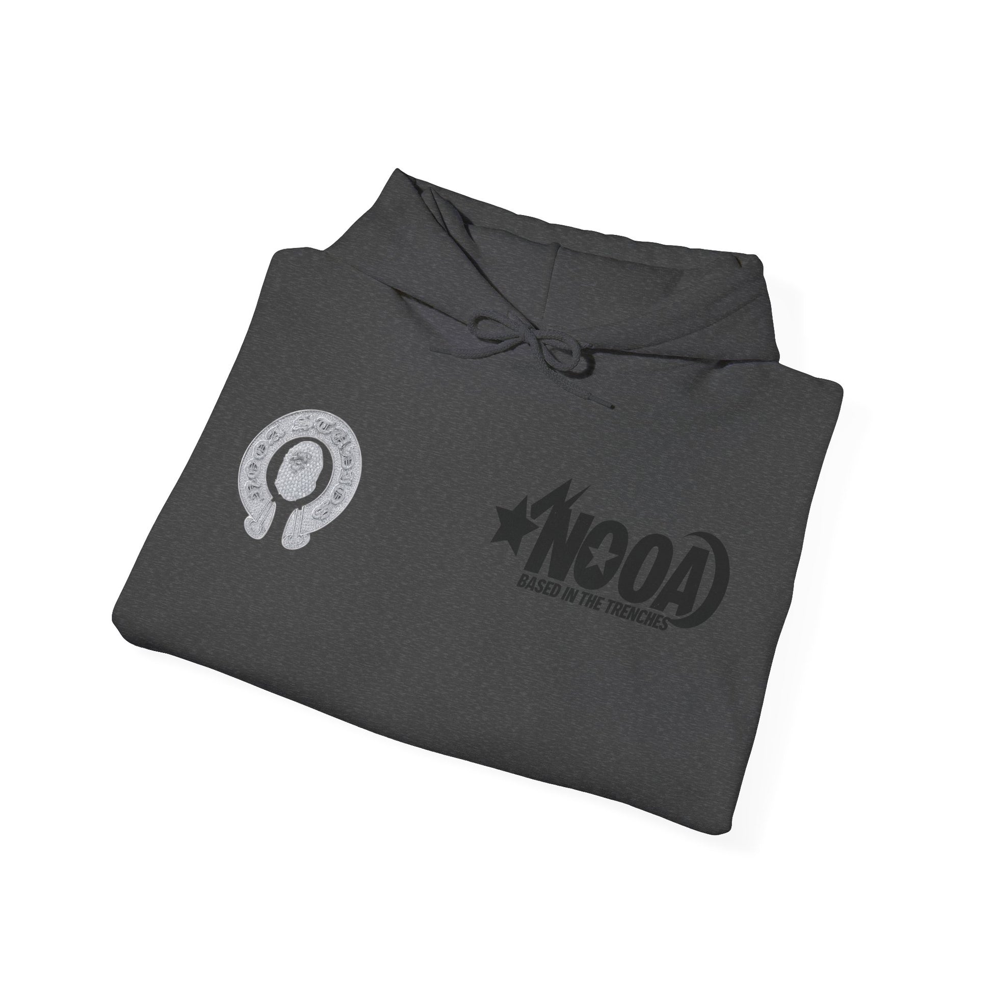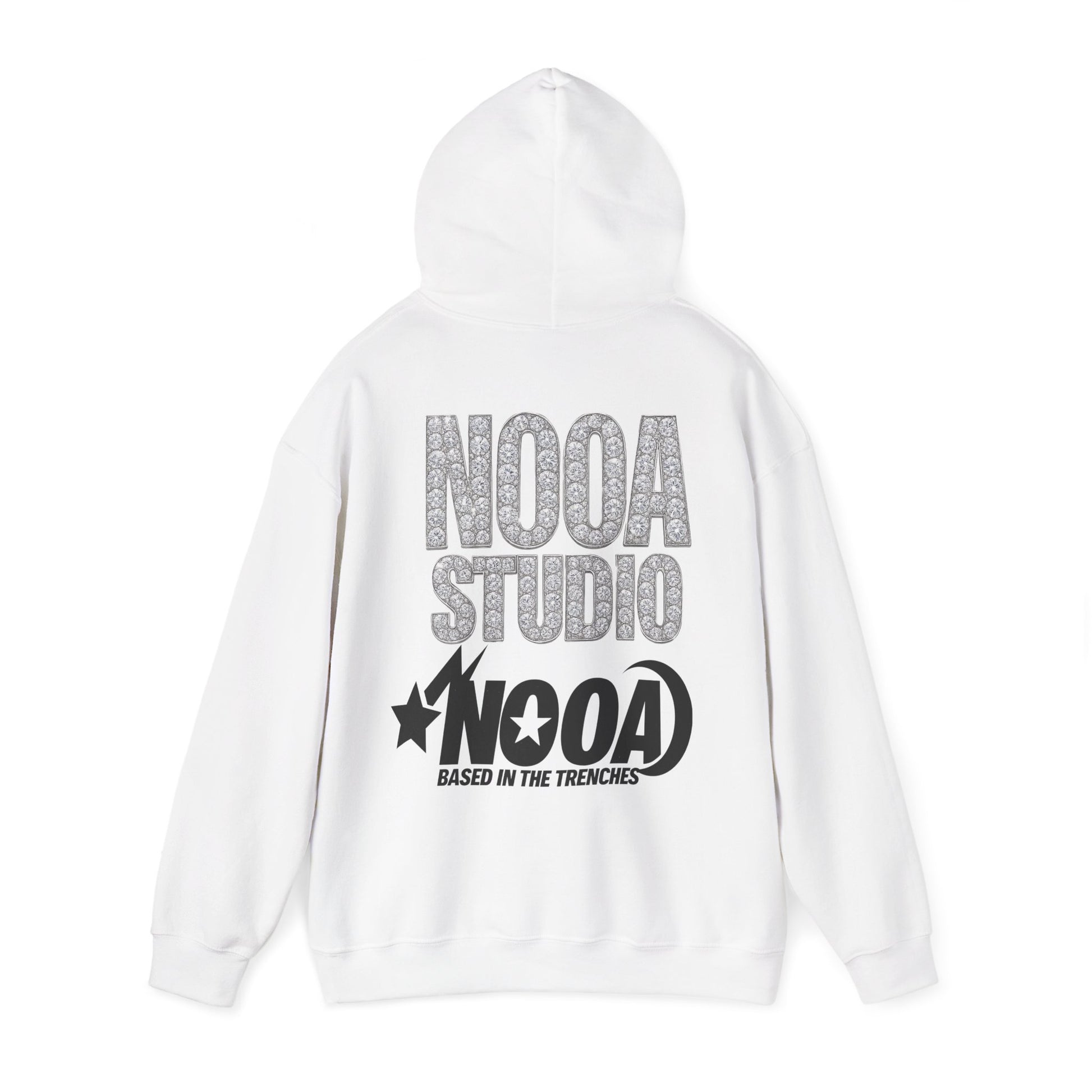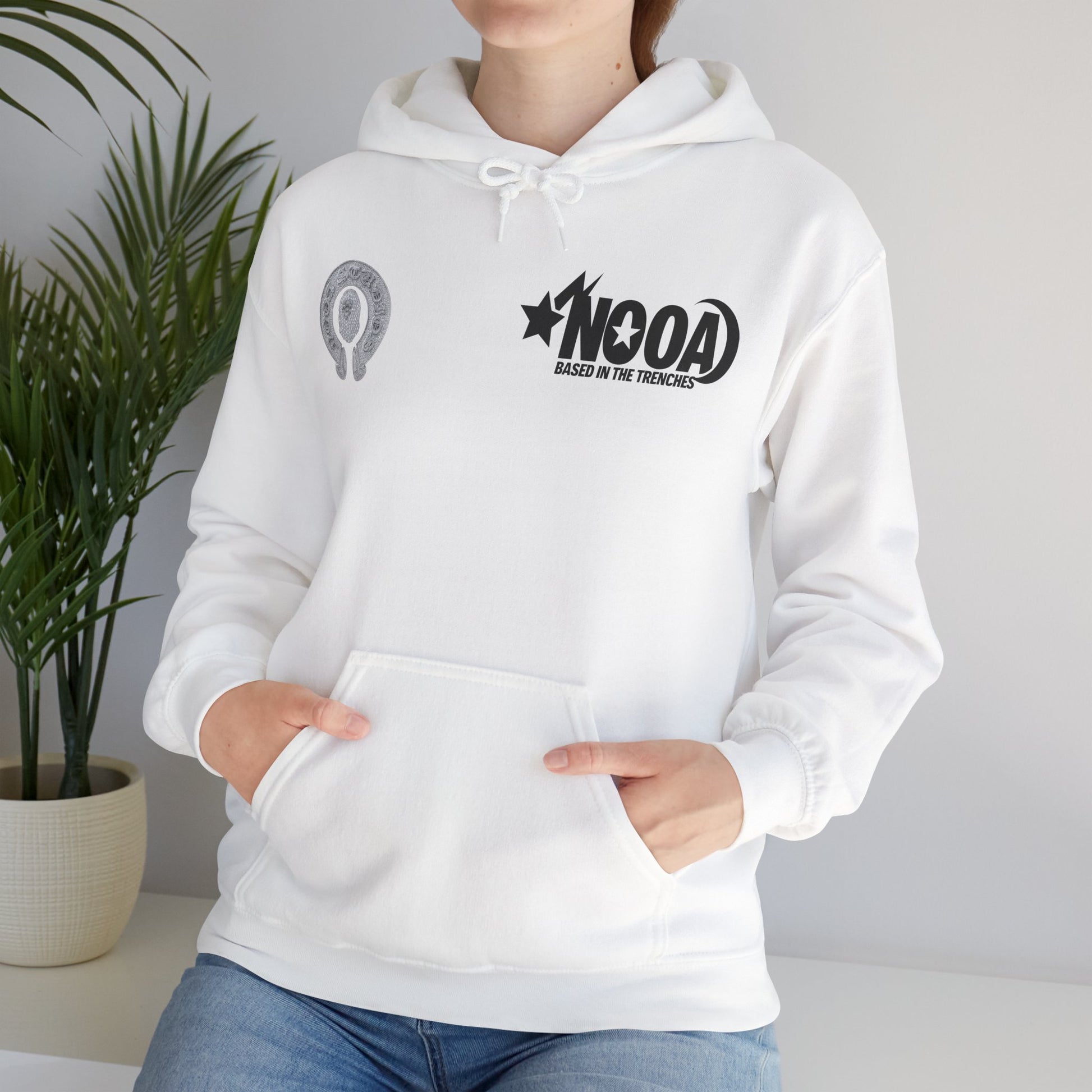 NOOA Studio Graphic Hoodie — 'Based in the Trenches' White Pullover