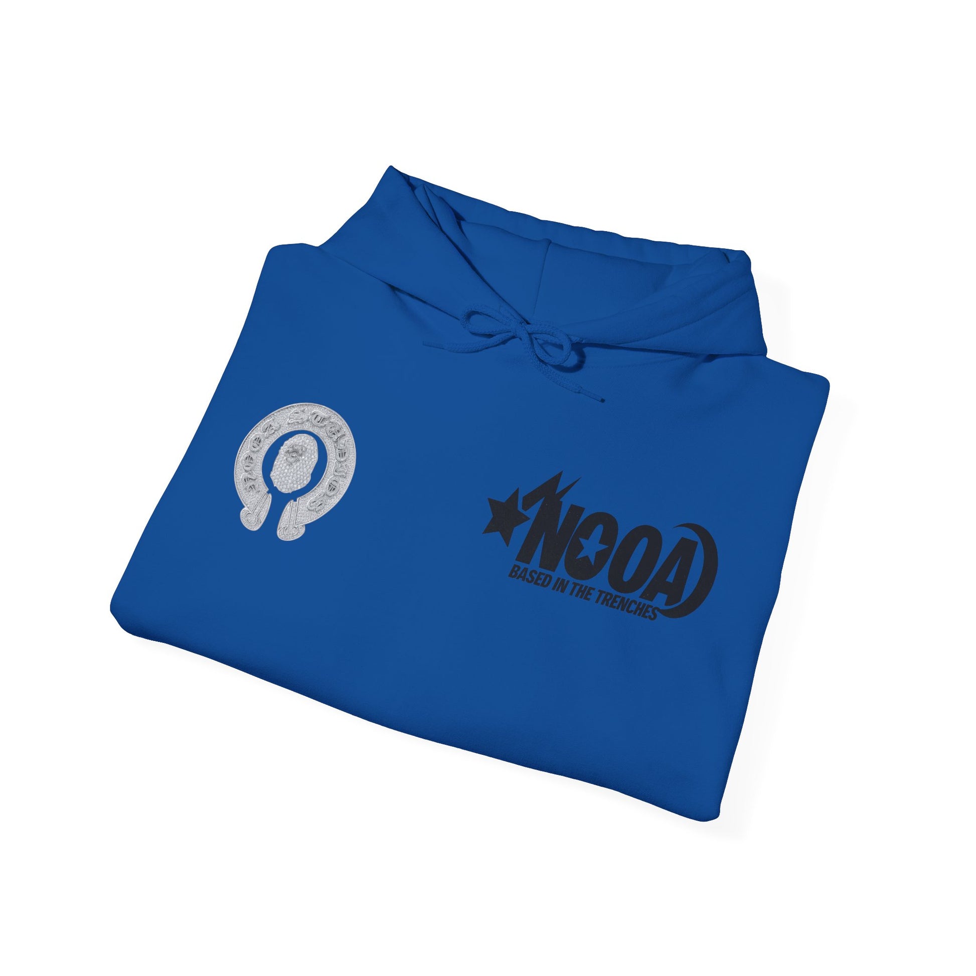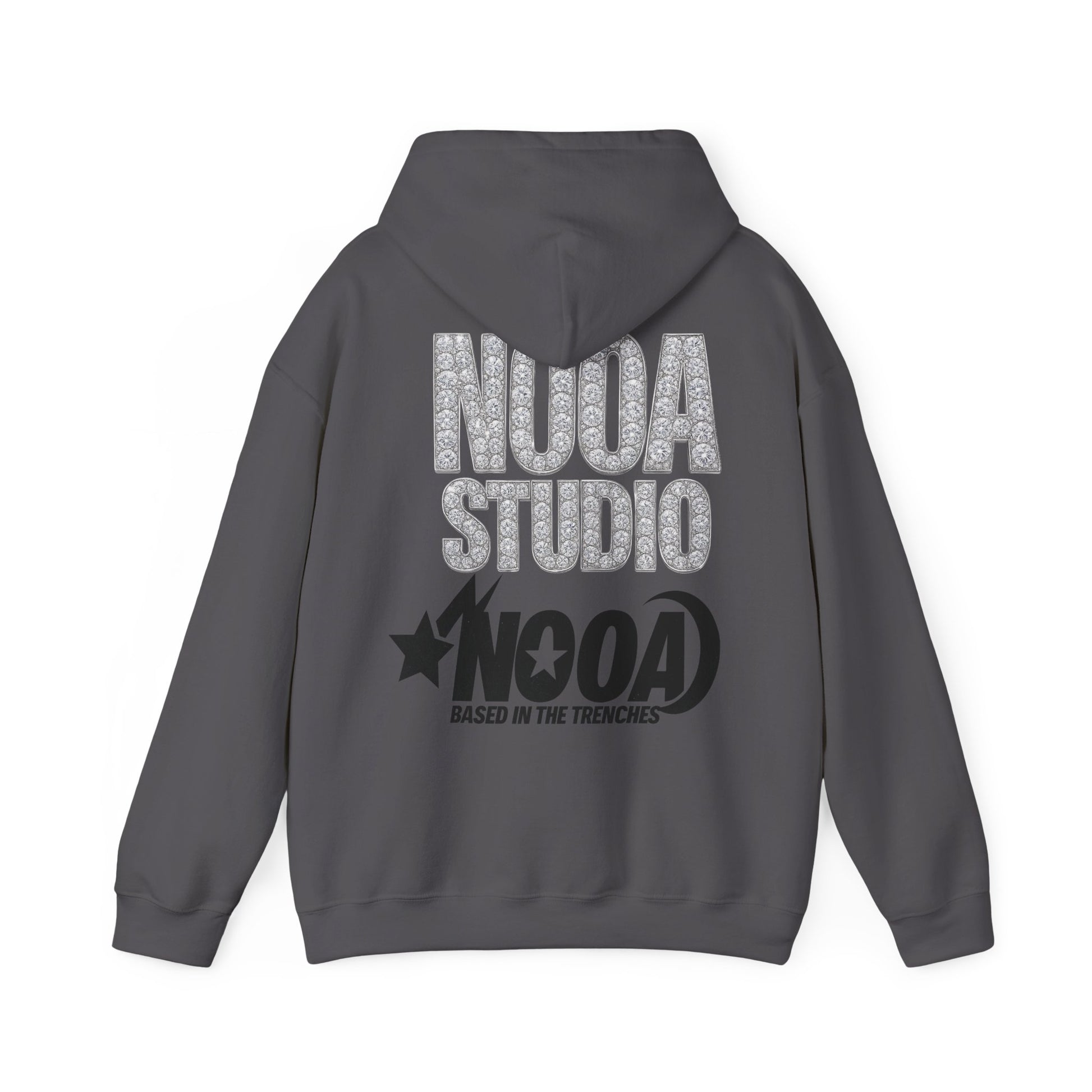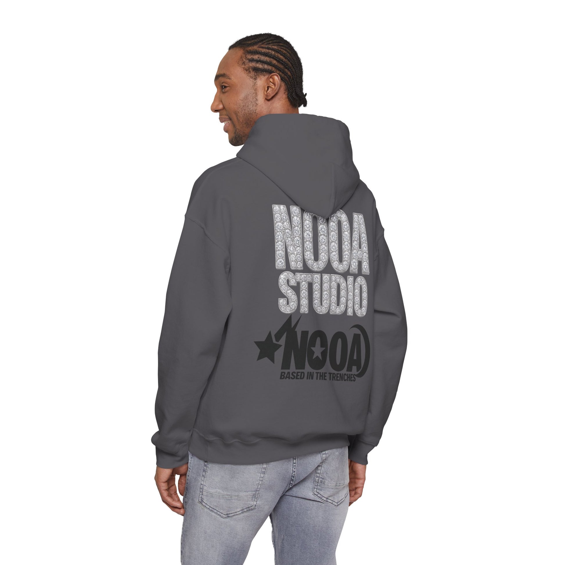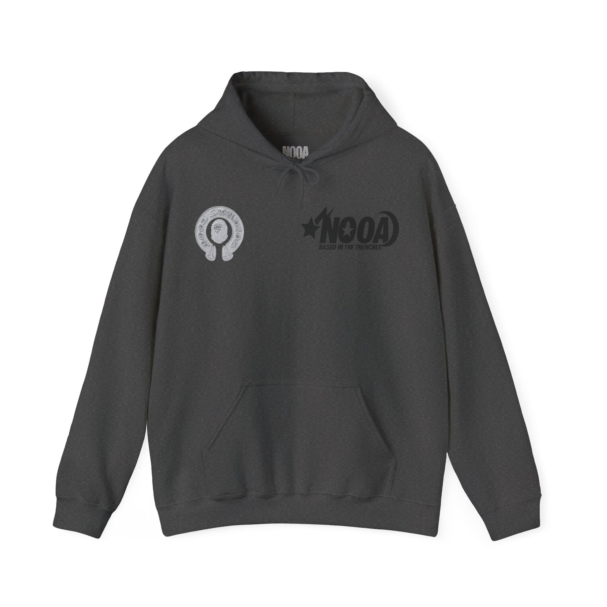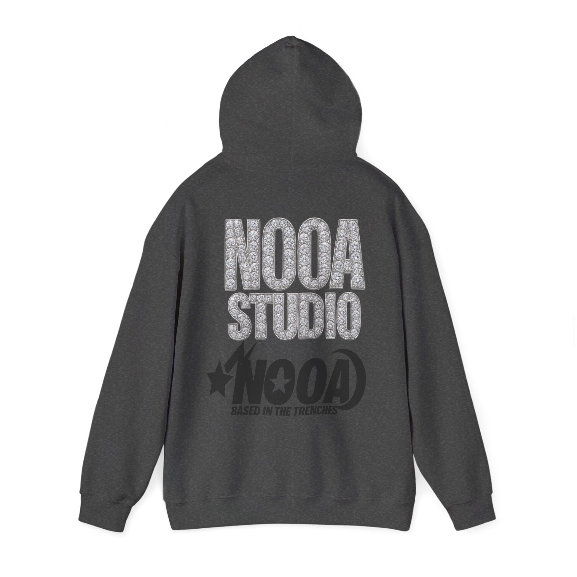 NOOA Studio Graphic Hoodie — 'Based in the Trenches' White Pullover