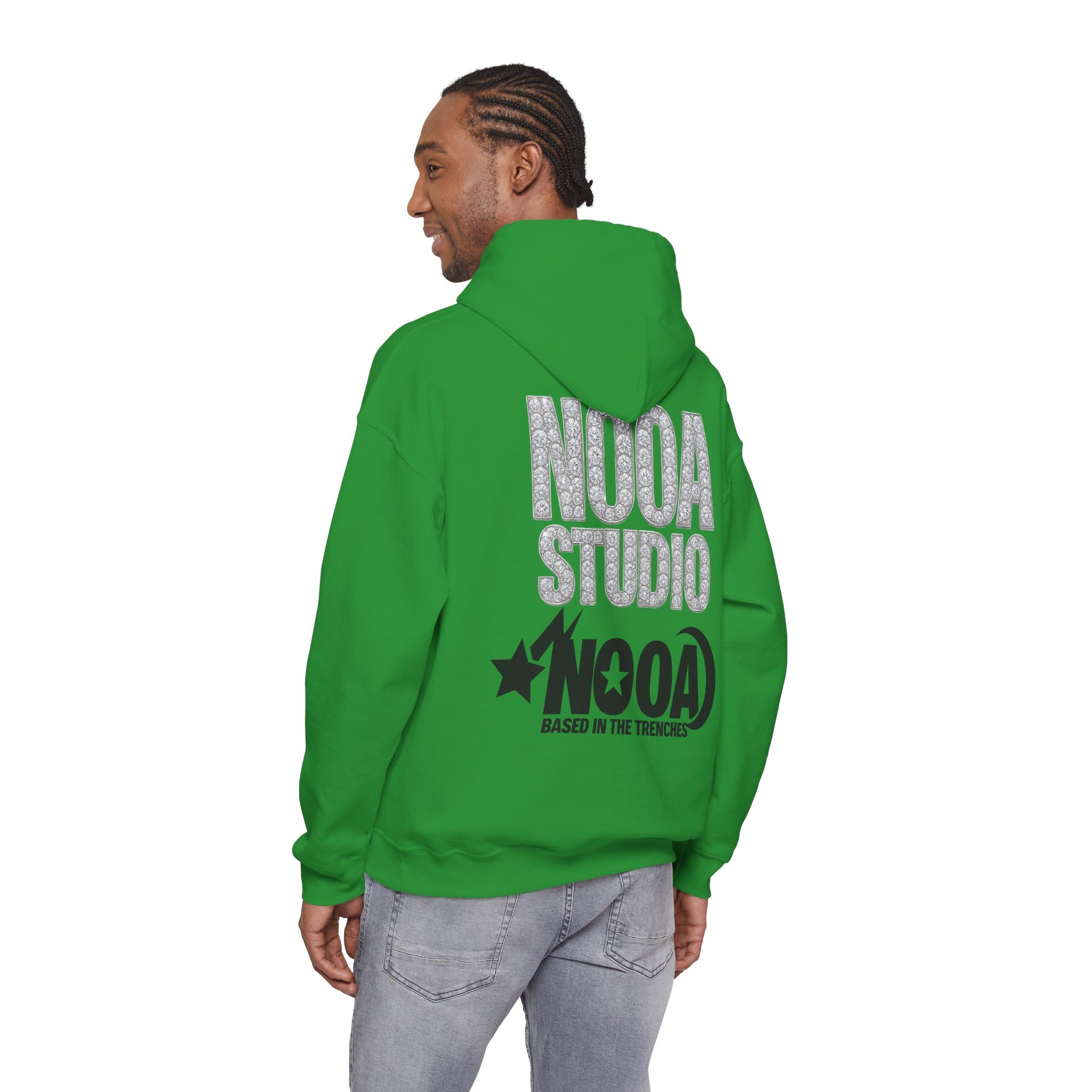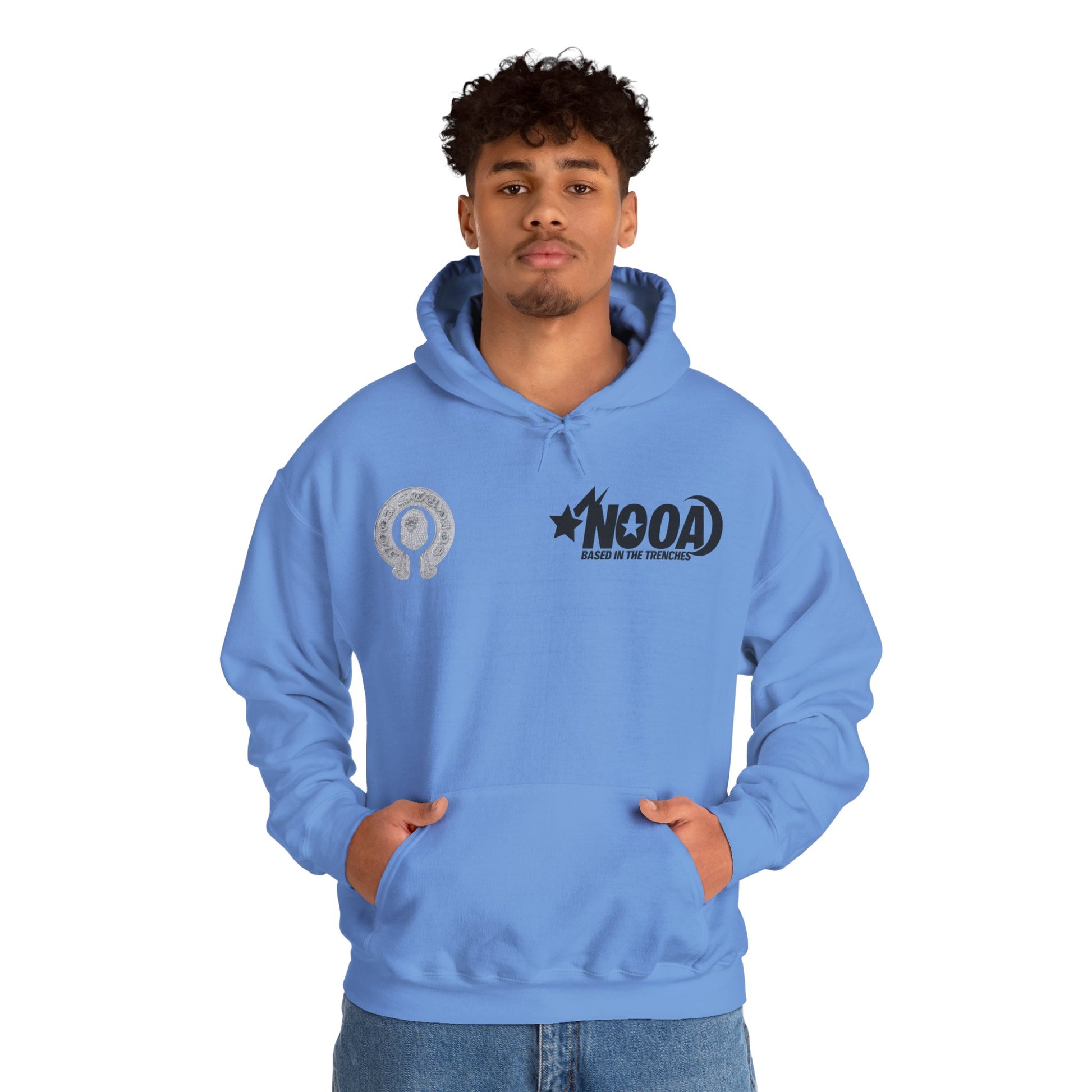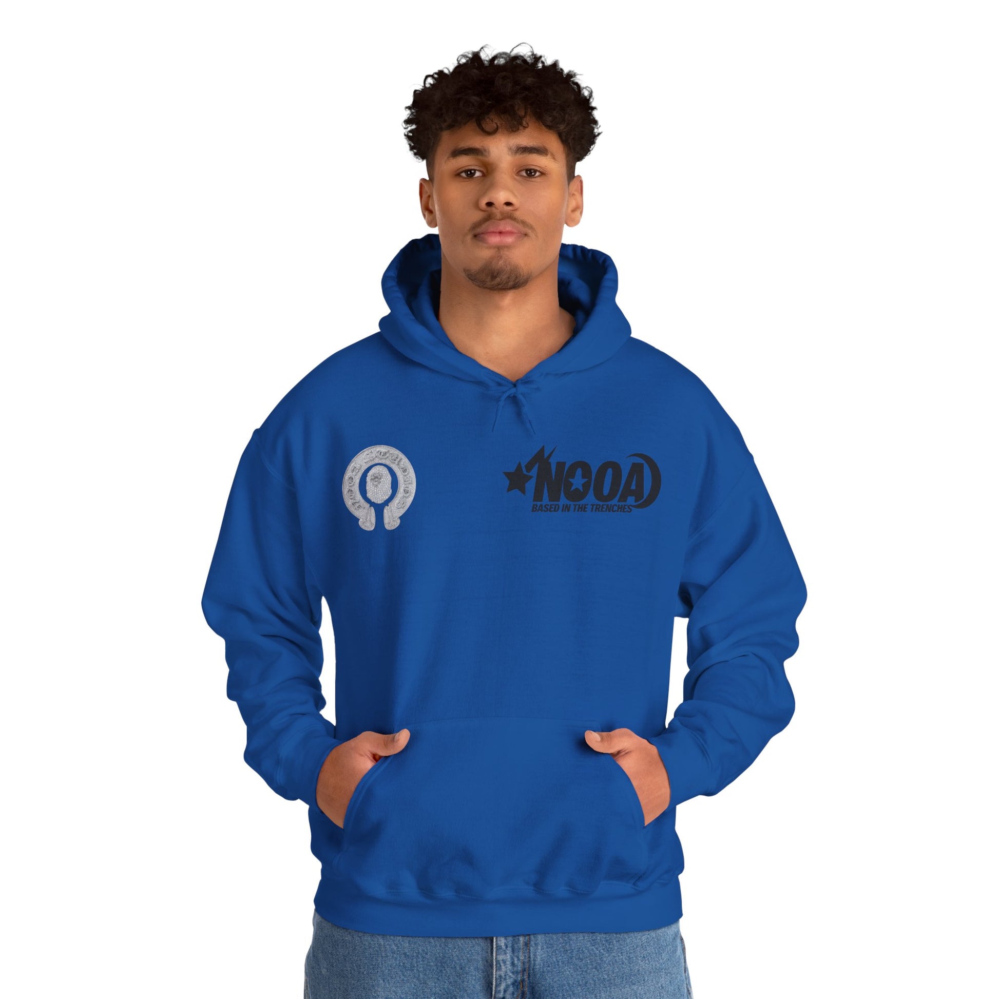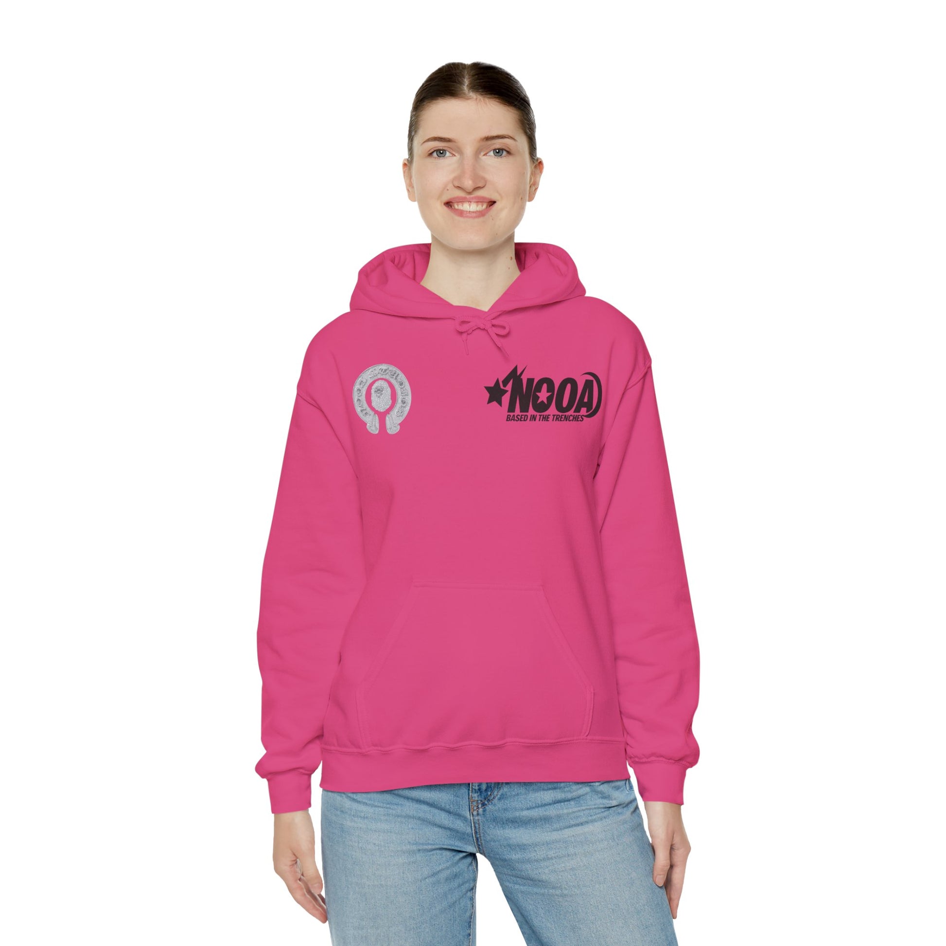 NOOA Studio Graphic Hoodie — 'Based in the Trenches' White Pullover