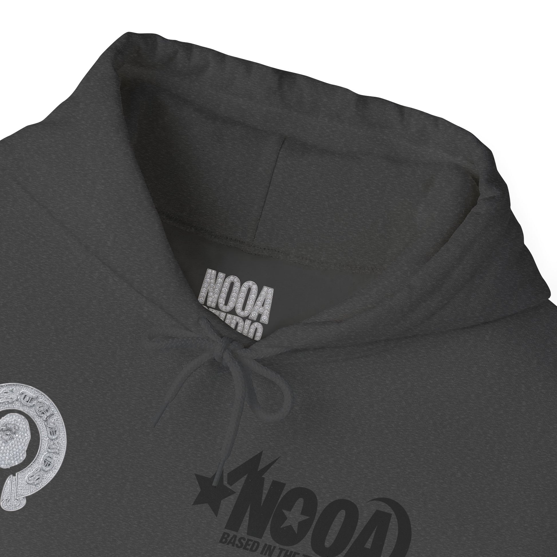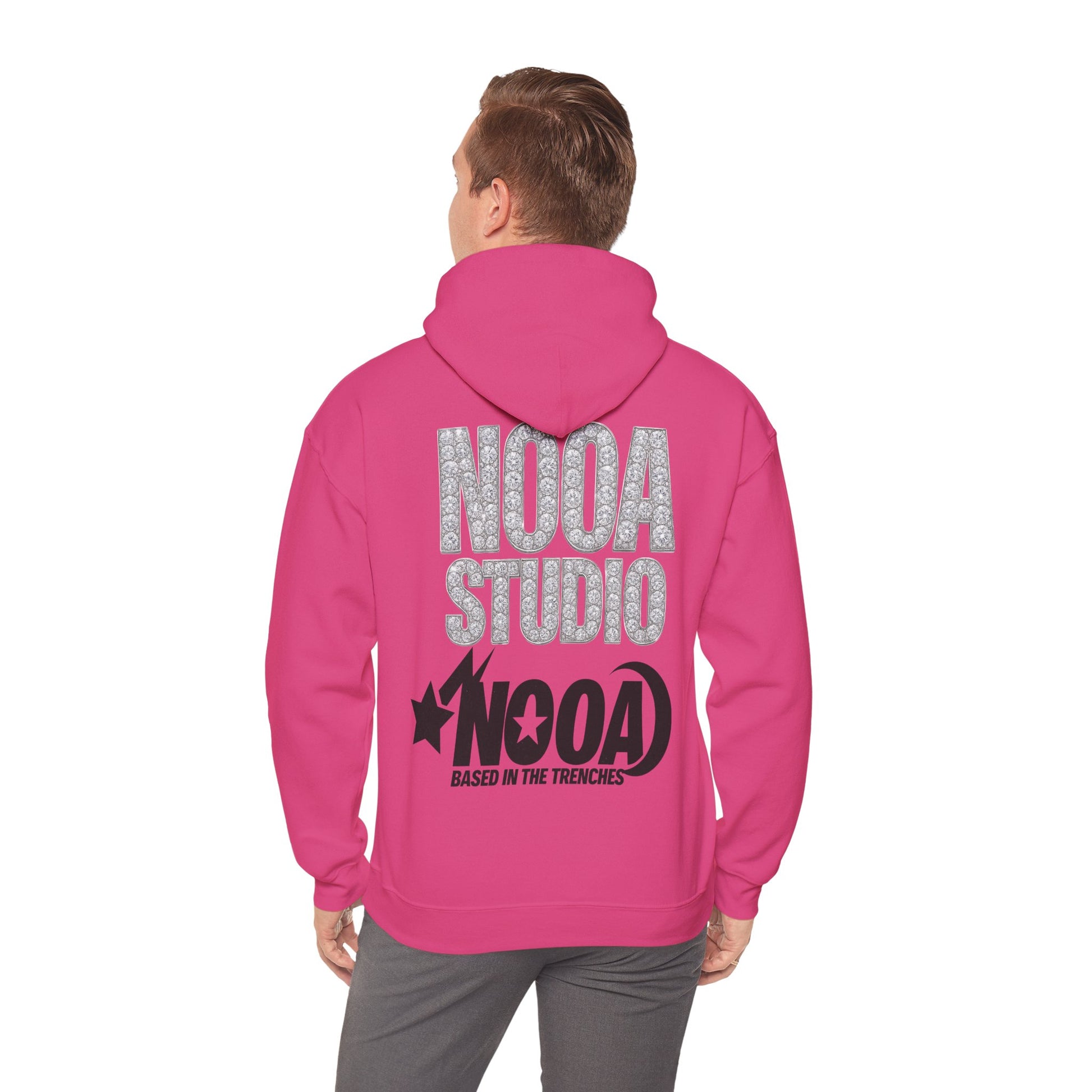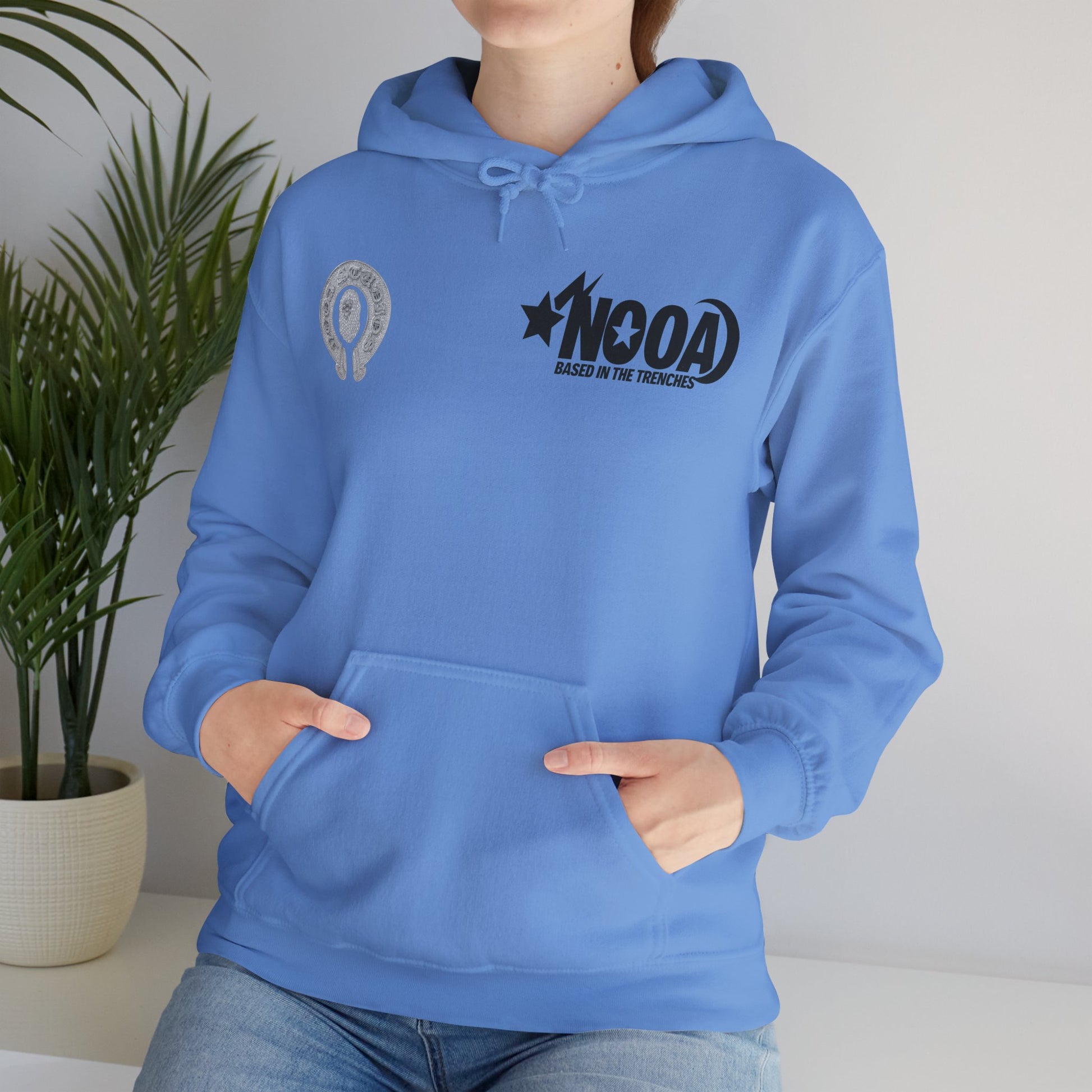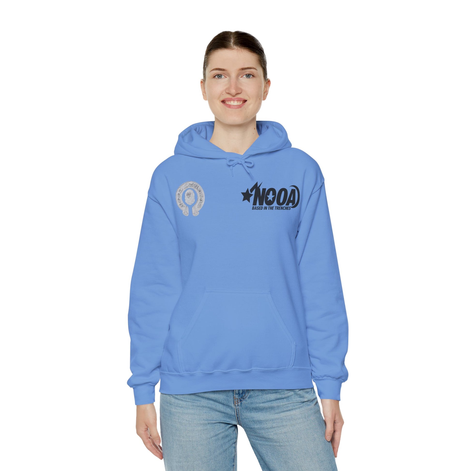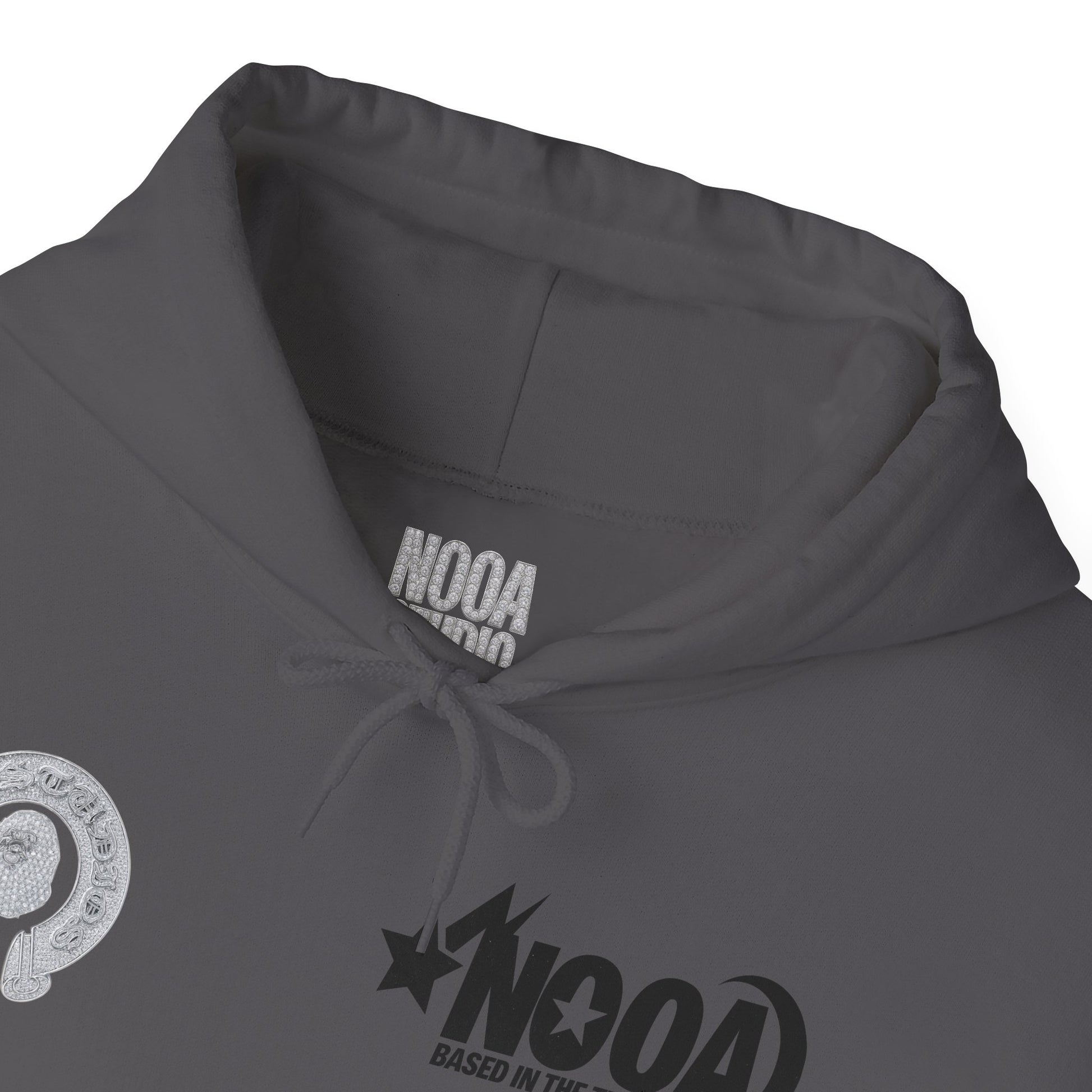 NOOA Studio Graphic Hoodie — 'Based in the Trenches' White Pullover