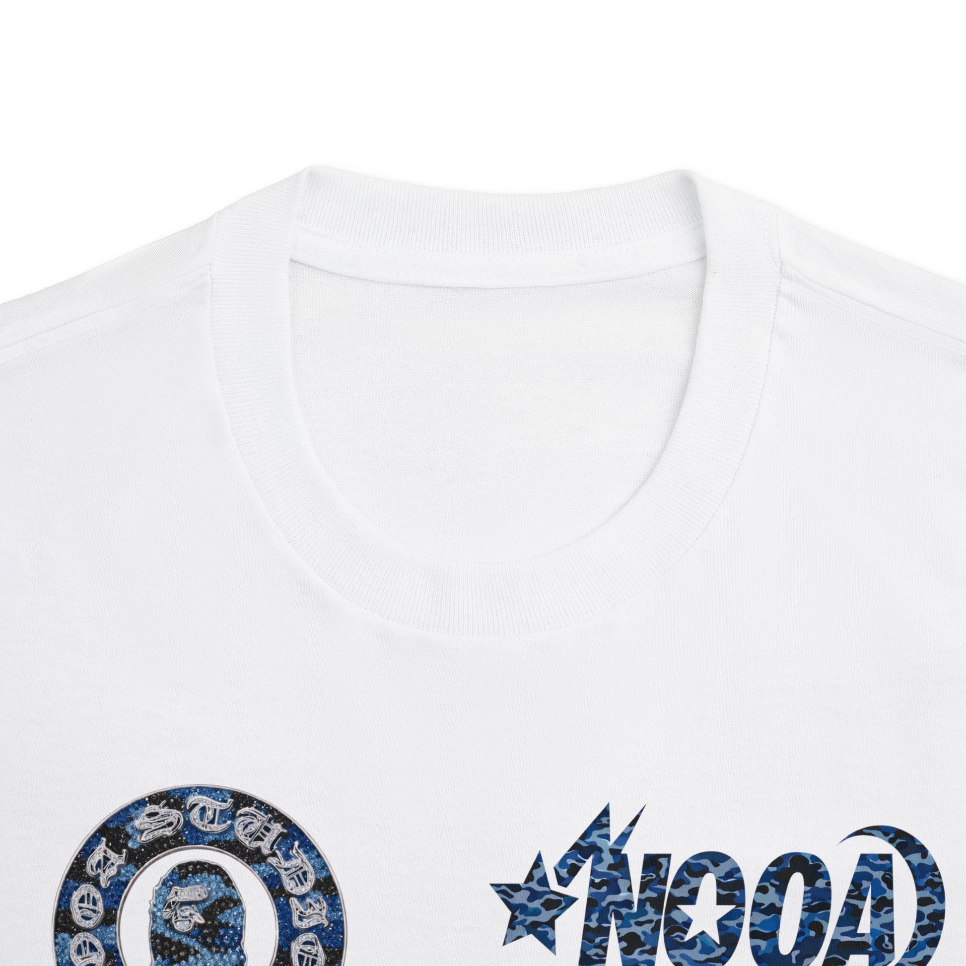 This classic tee brings quiet confidence to the everyday. Crisp white cotton holds a bold, distressed insignia on the chest and a larger emblem across the back — graphics that read like a worn denim patch from nights spent building something real. It sits with a relaxed, classic fit that layers easily under a jacket or stands alone with jeans. Breathable medium-weight fabric and a ribbed collar keep the silhouette structured. Little details — twill neck and shoulder tape, double-needle hems, and a tear-away label — mean it wears in without losing shape. For someone who lives in the workshop, the studio, or on late shifts, this shirt carries a lived-in story and keeps you comfortable while you make it your own.